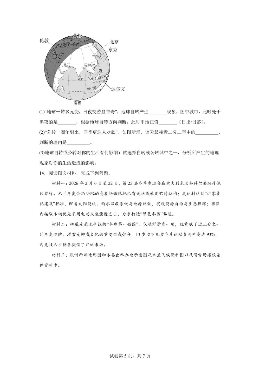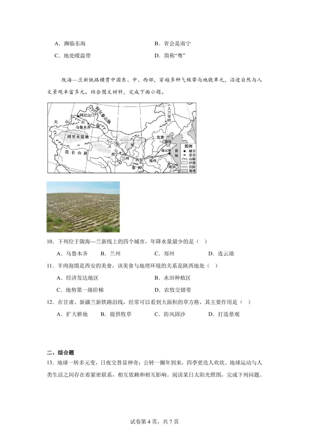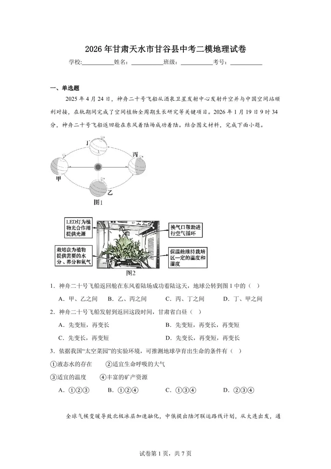 >2026年天水市甘谷县中考二模地理试卷