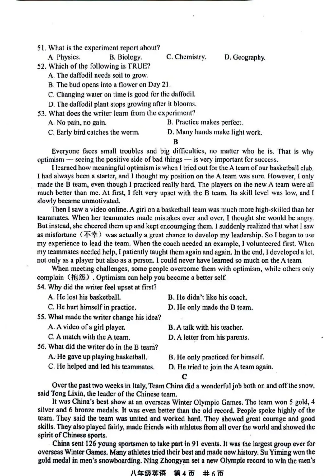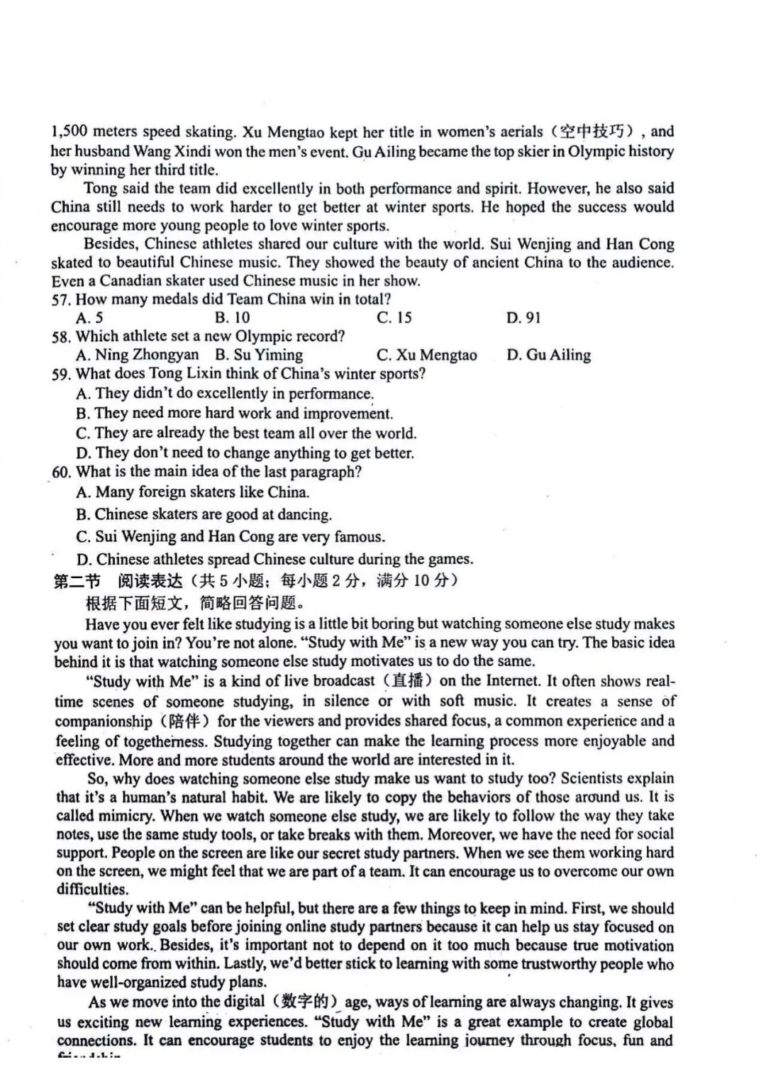 2026年许昌市中招一模英语试卷及答案(附带听力)