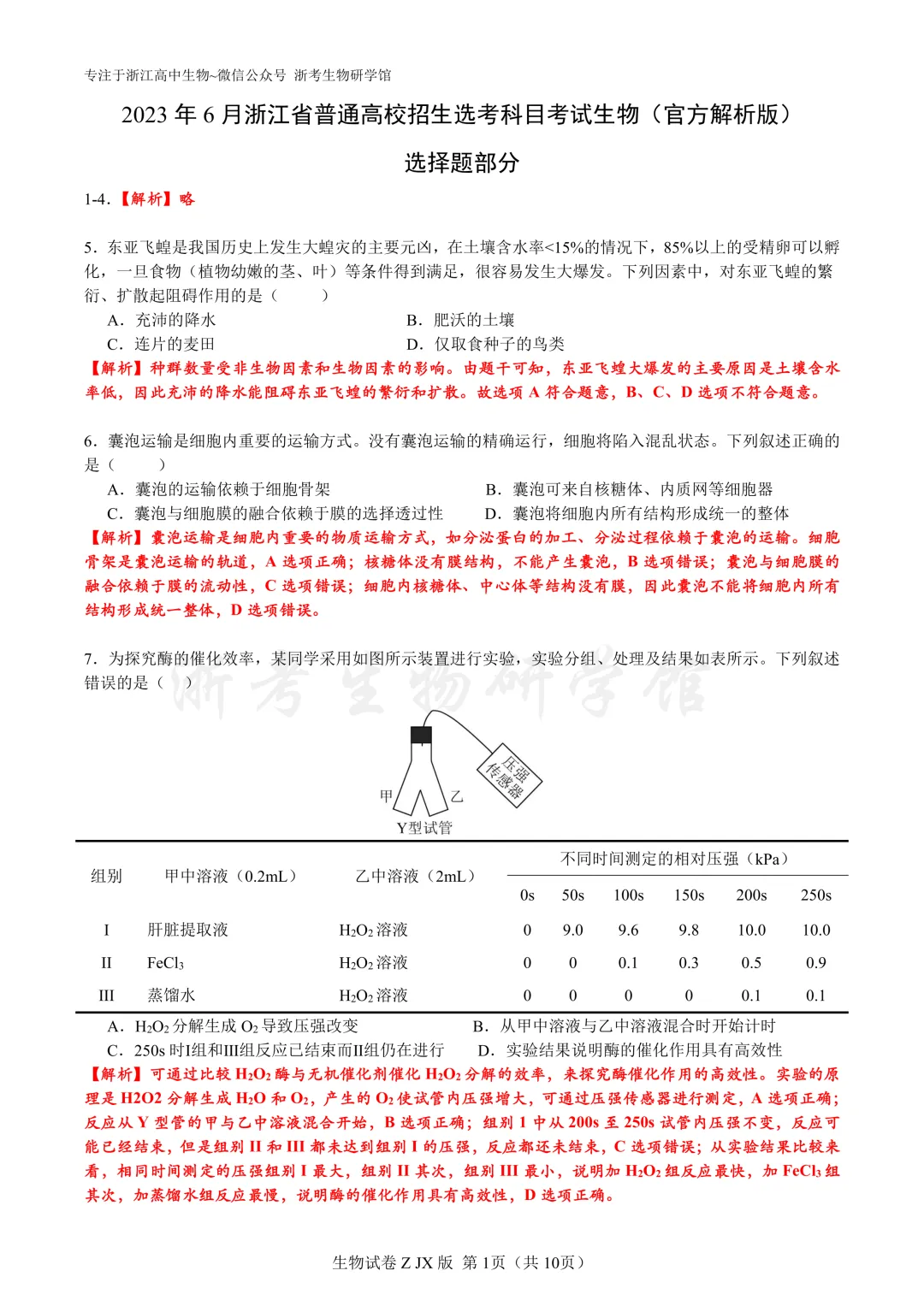 再刷真题|2023年浙江省6月选考试题及解析(官方解析)