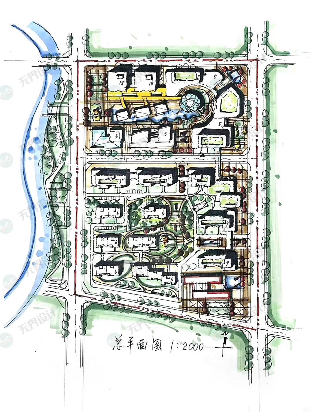 ③西南角居住用地设计与景观融合的居住产品;