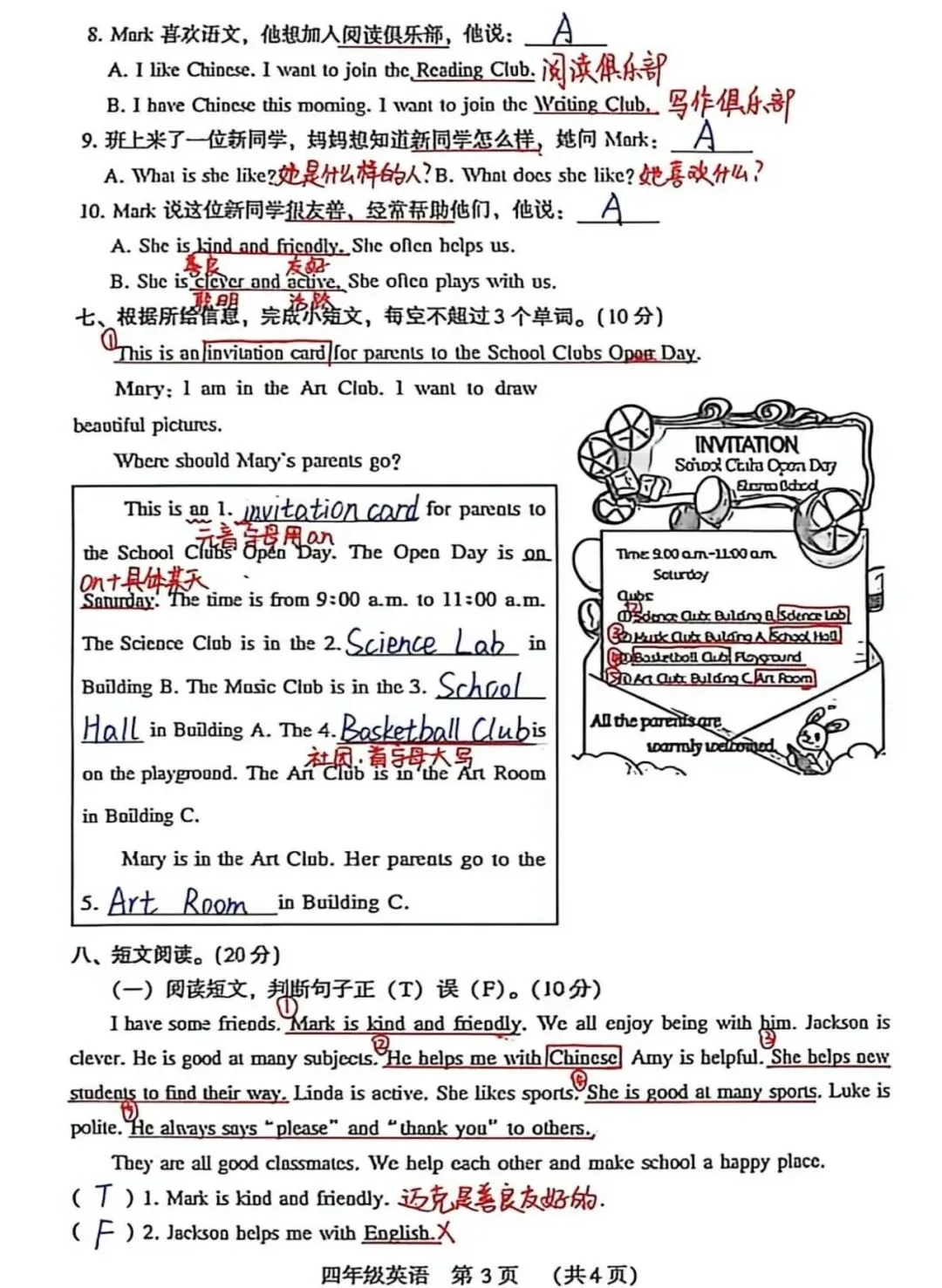 【四年级】期中考试试卷分析