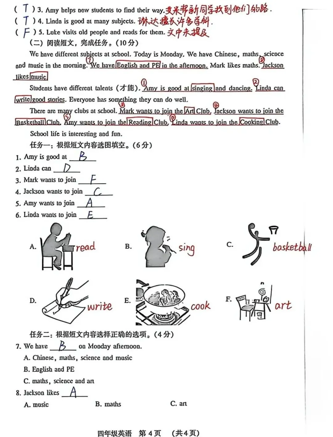 外研版四下期中试卷