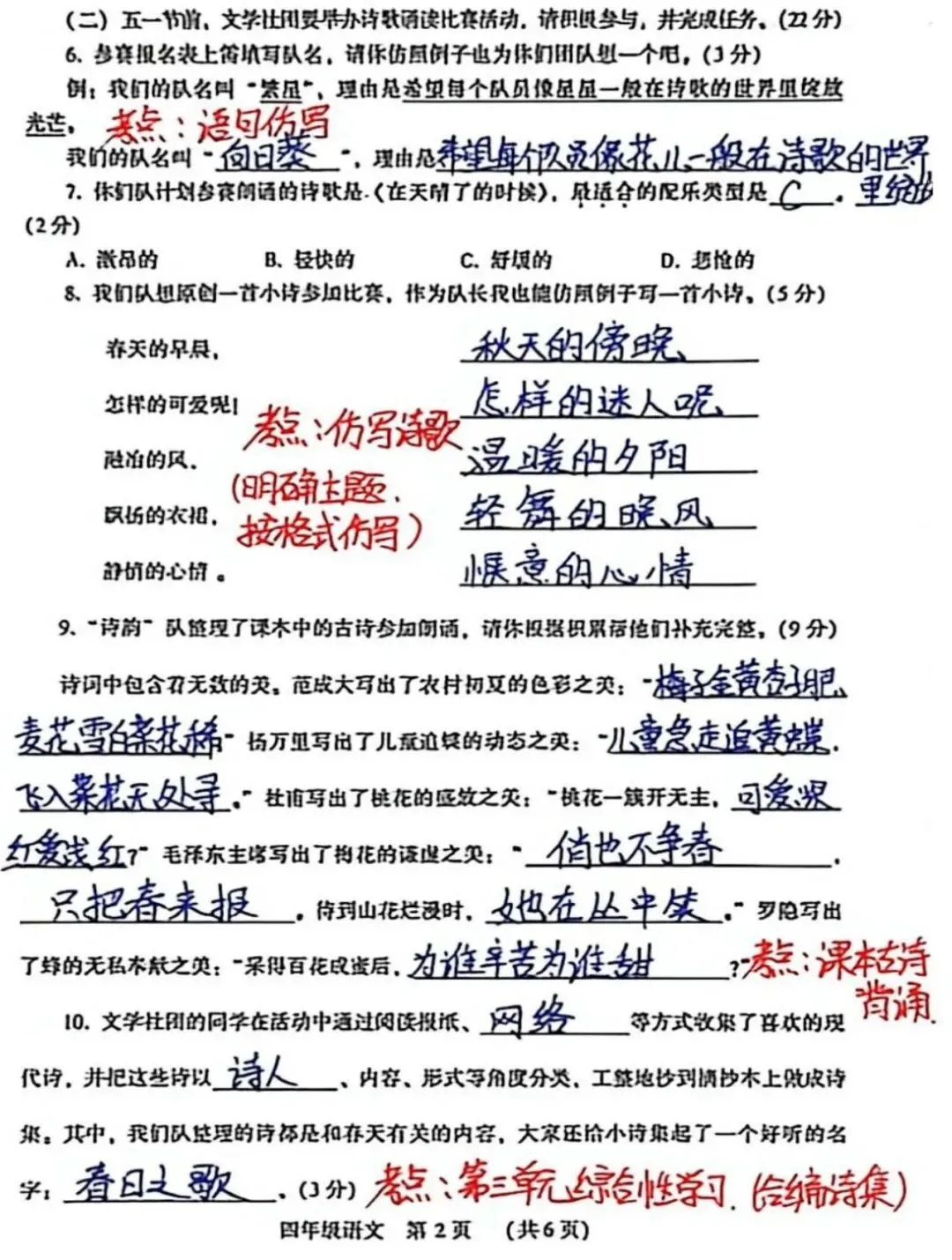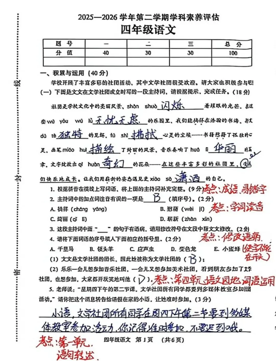 >【四年级】期中考试试卷分析