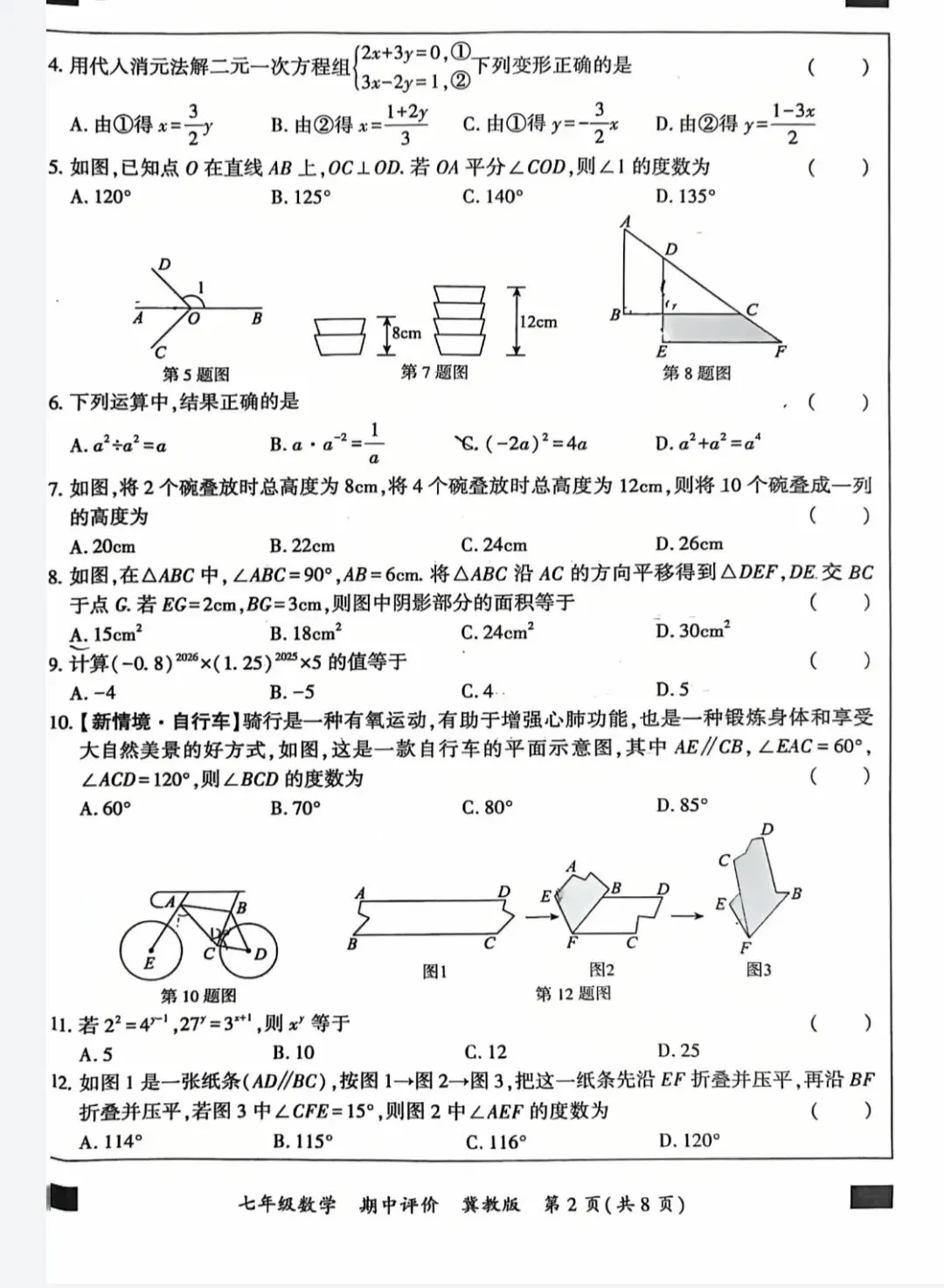 2025-2026七下八下期中试卷汇总