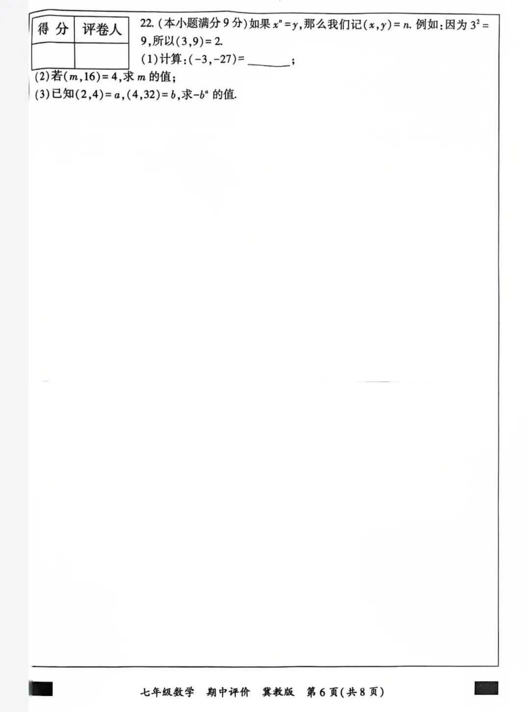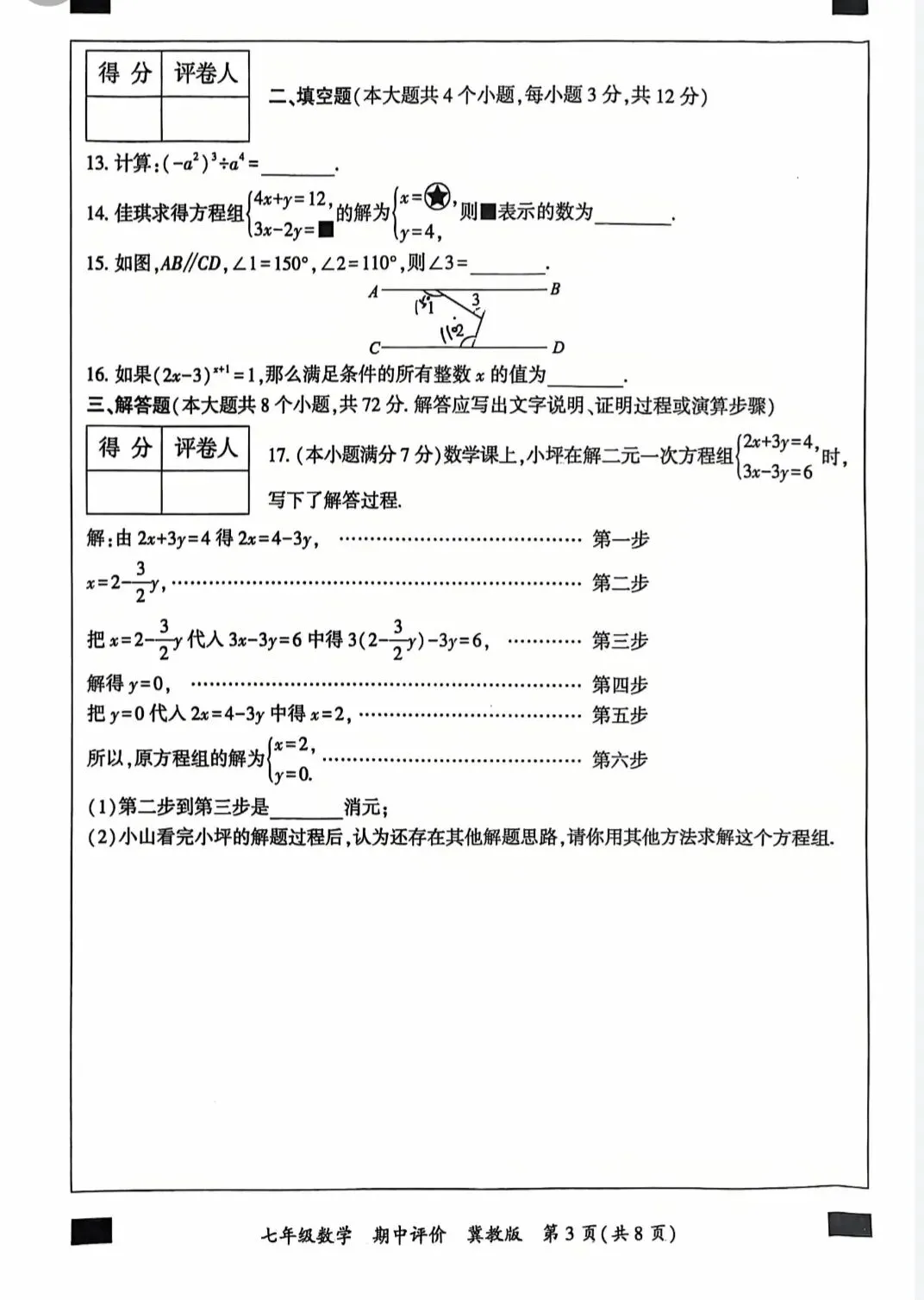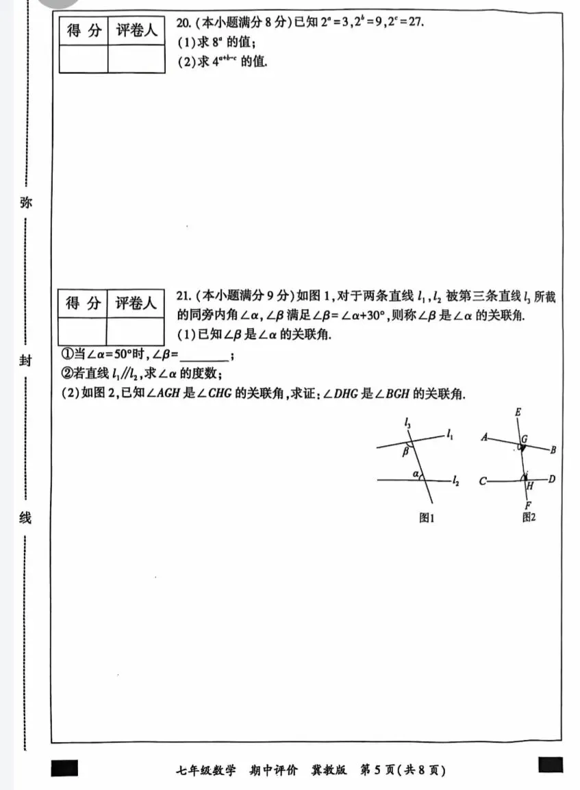 七下数学冀教期中试卷