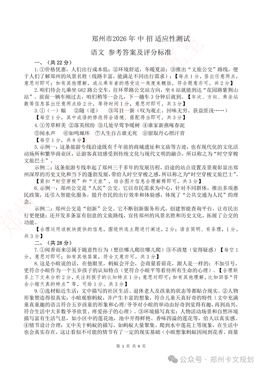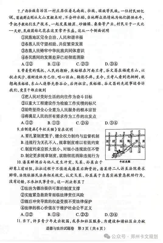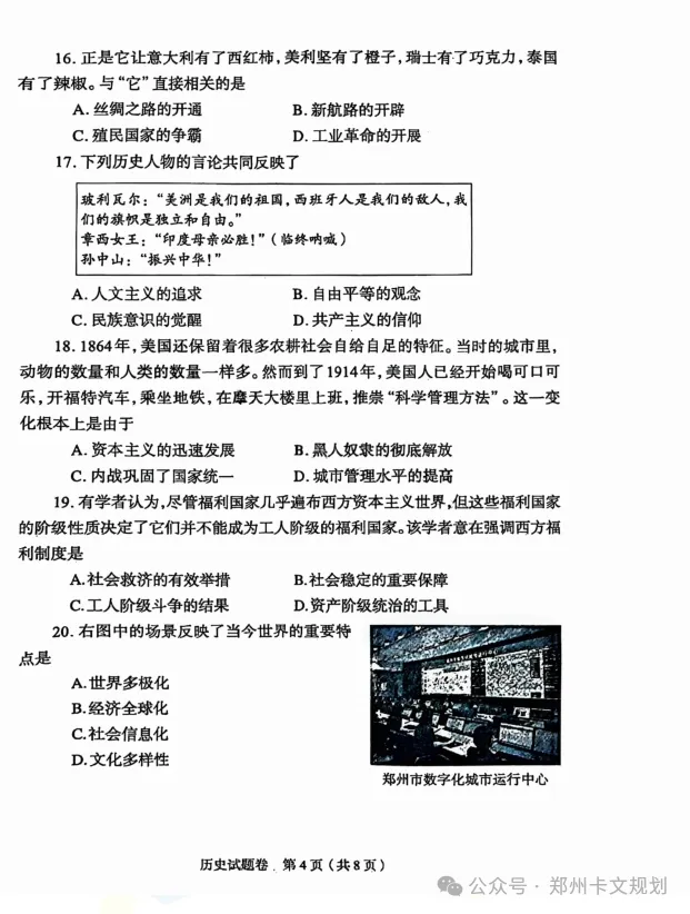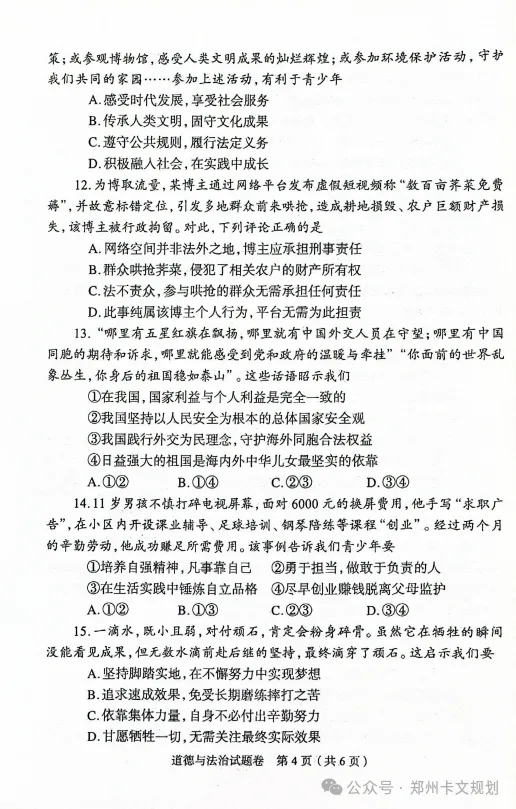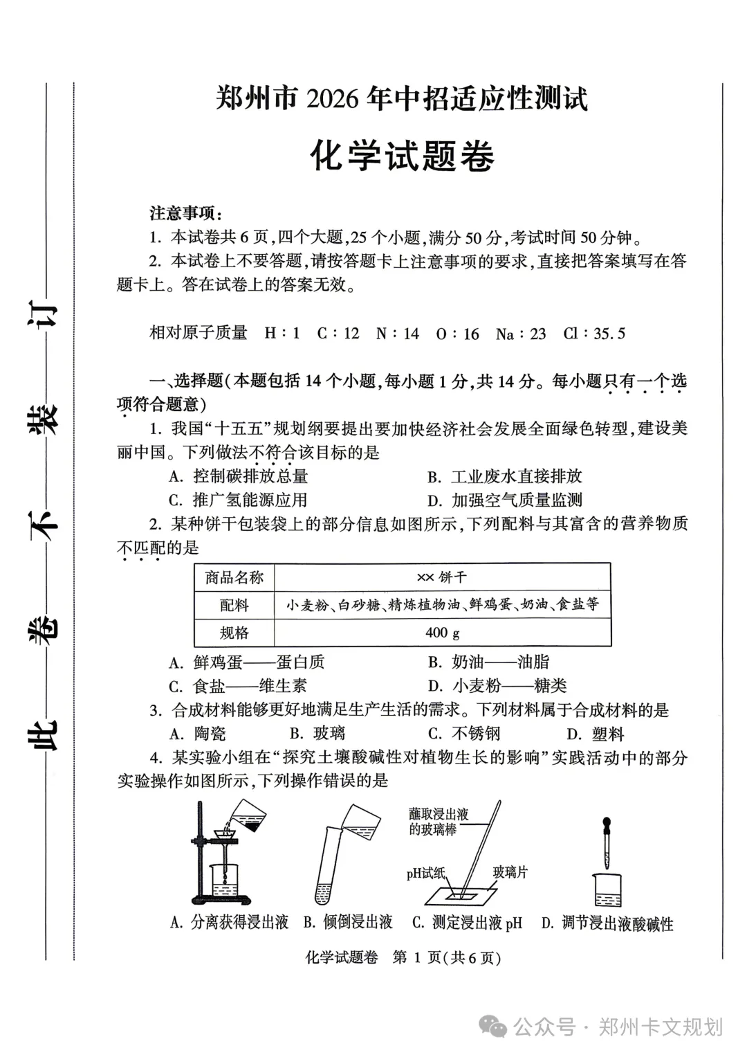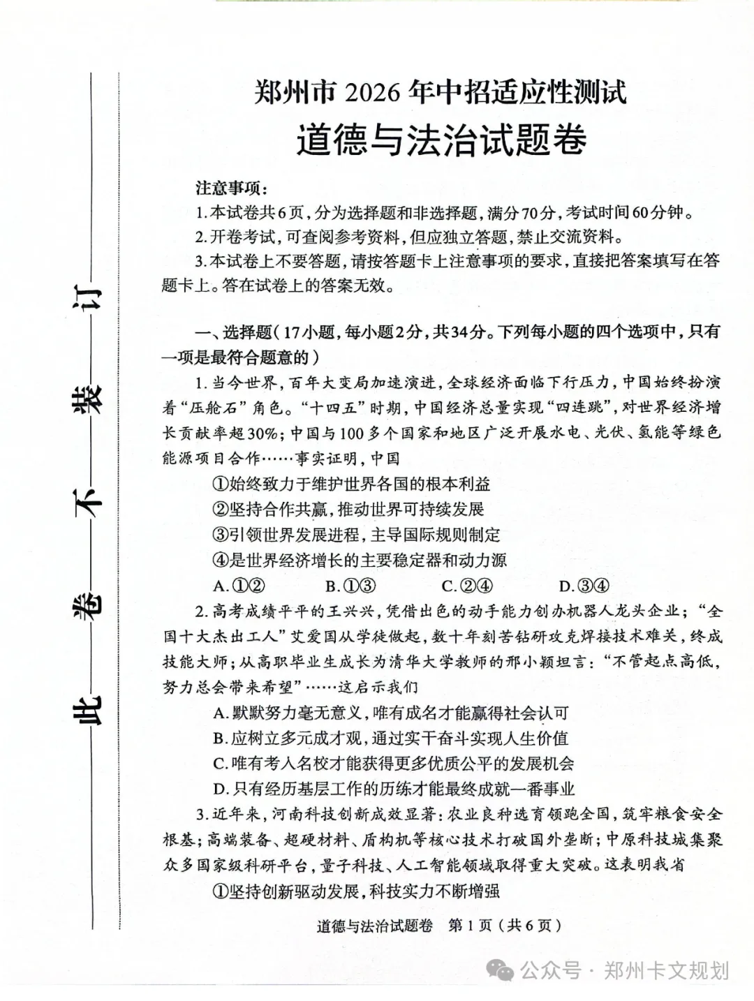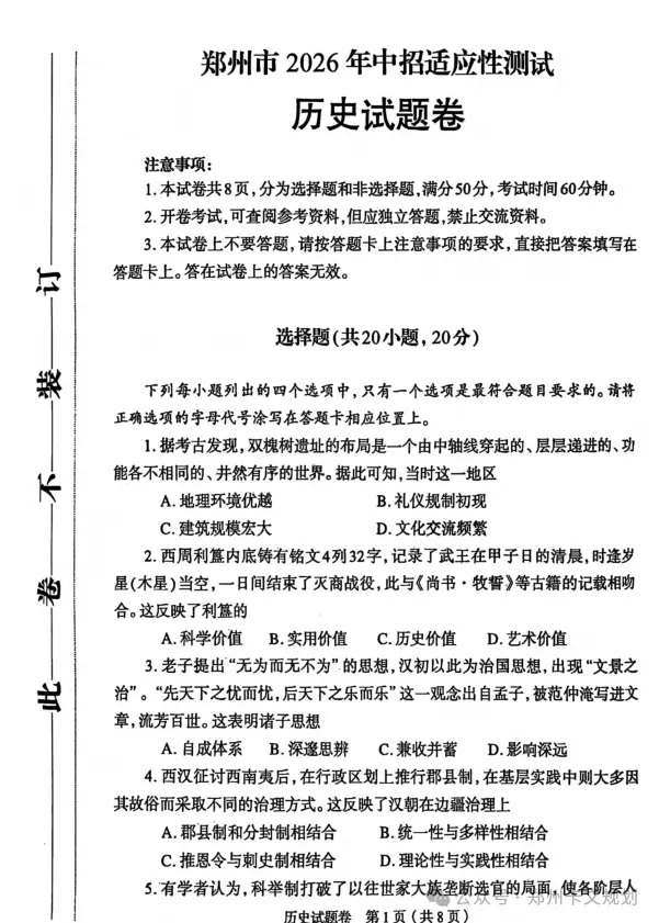 2026郑州初三毕业年级适应性测试试卷