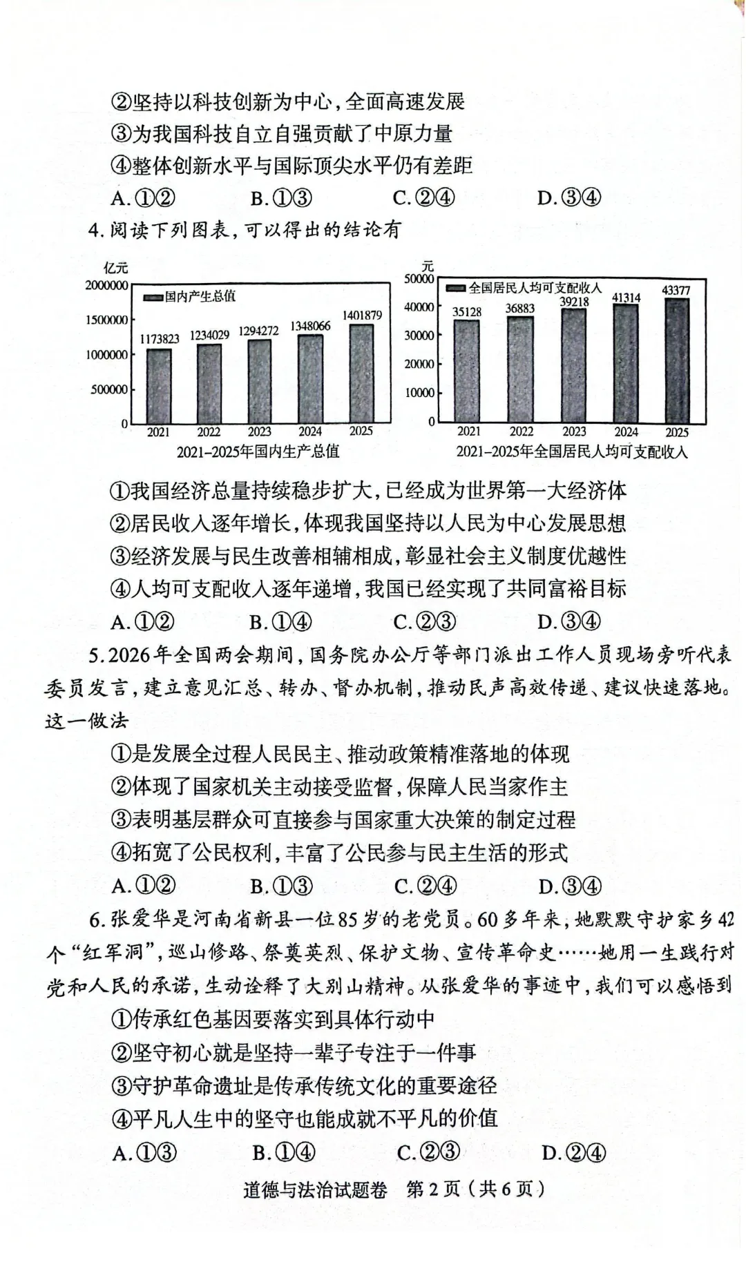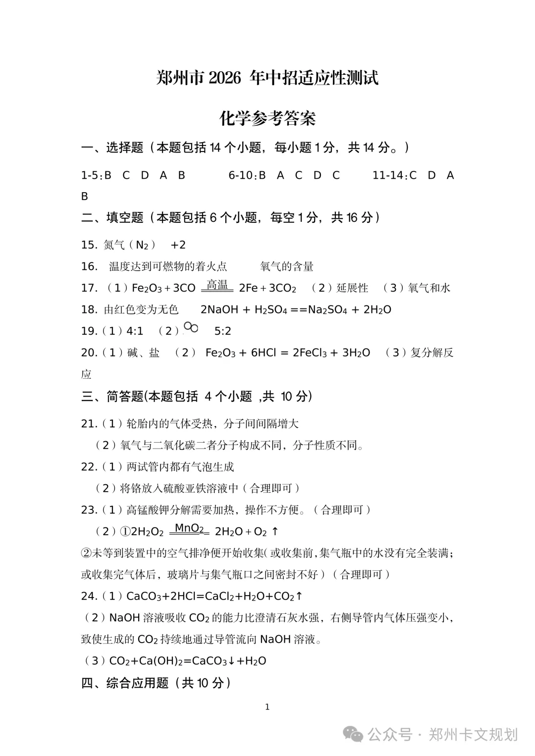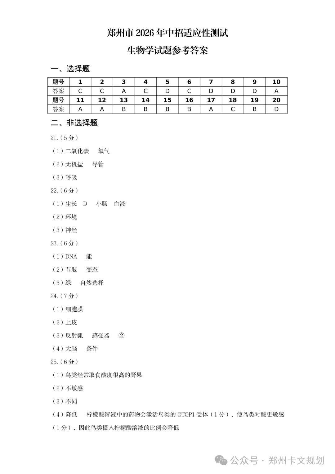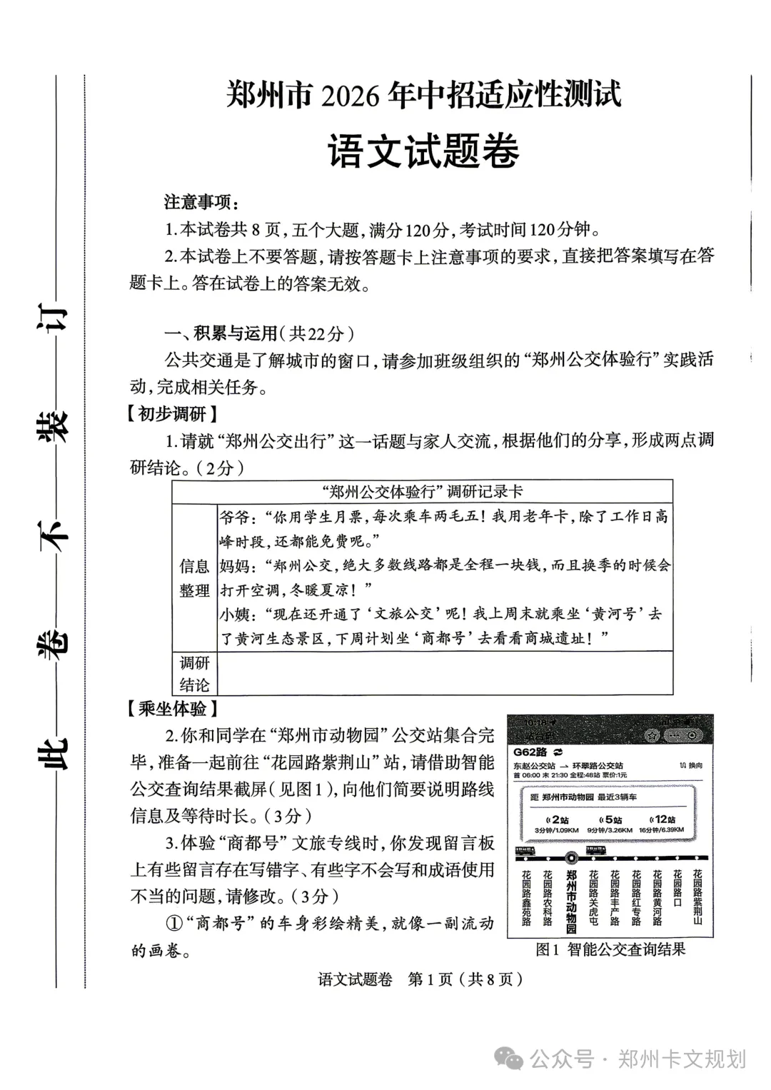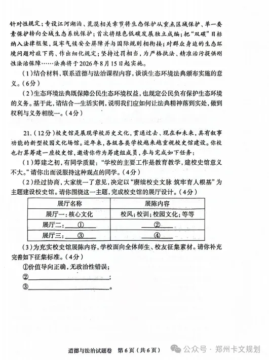 2026郑州初三毕业年级适应性测试试卷