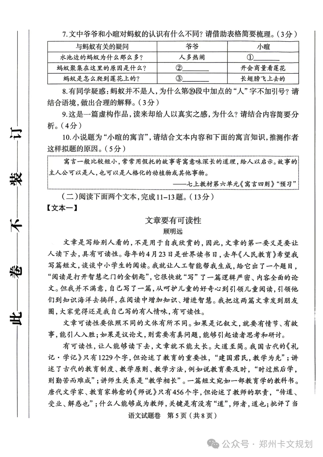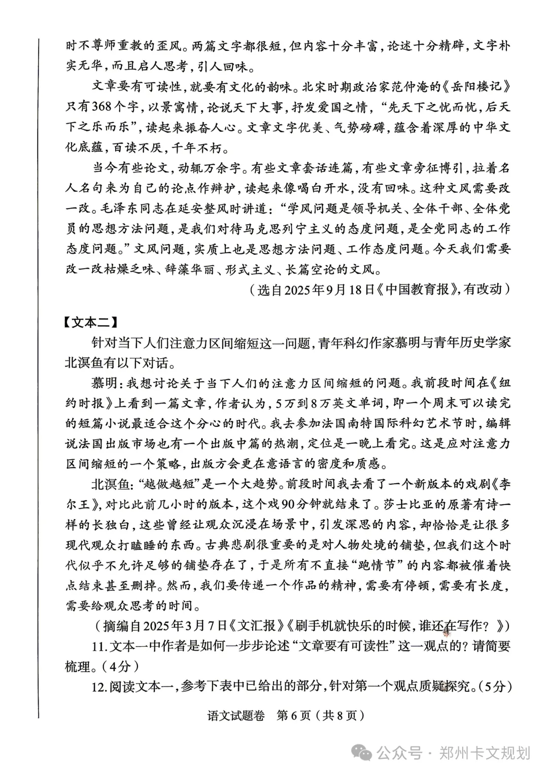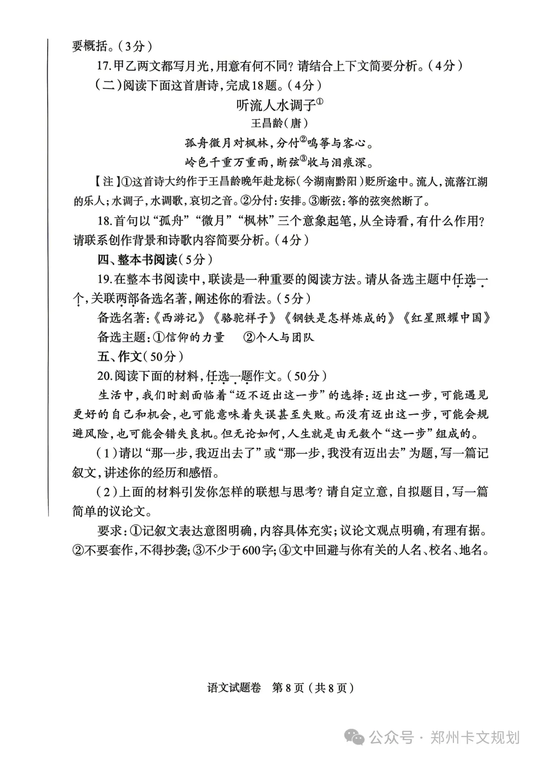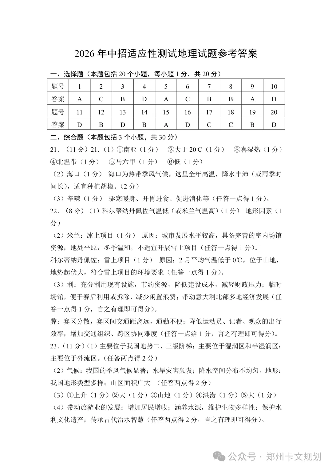 2026郑州初三毕业年级适应性测试试卷
