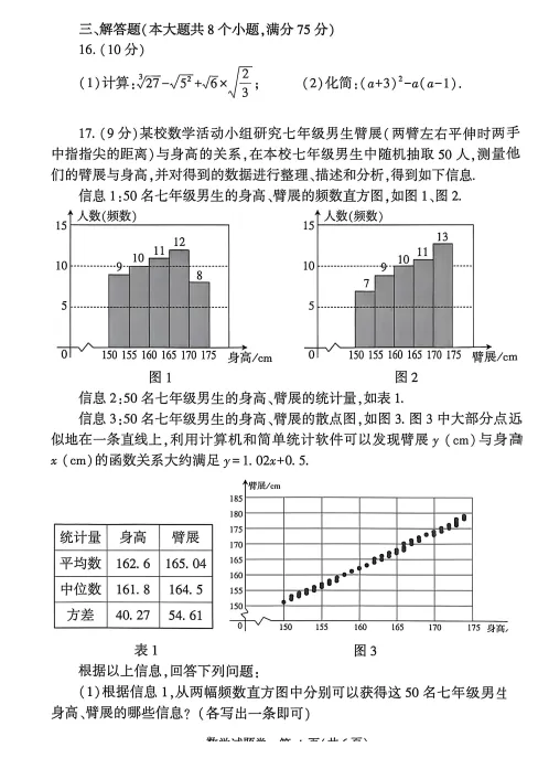 期中考试试卷3:七、八、九年级试题分享(附答案)