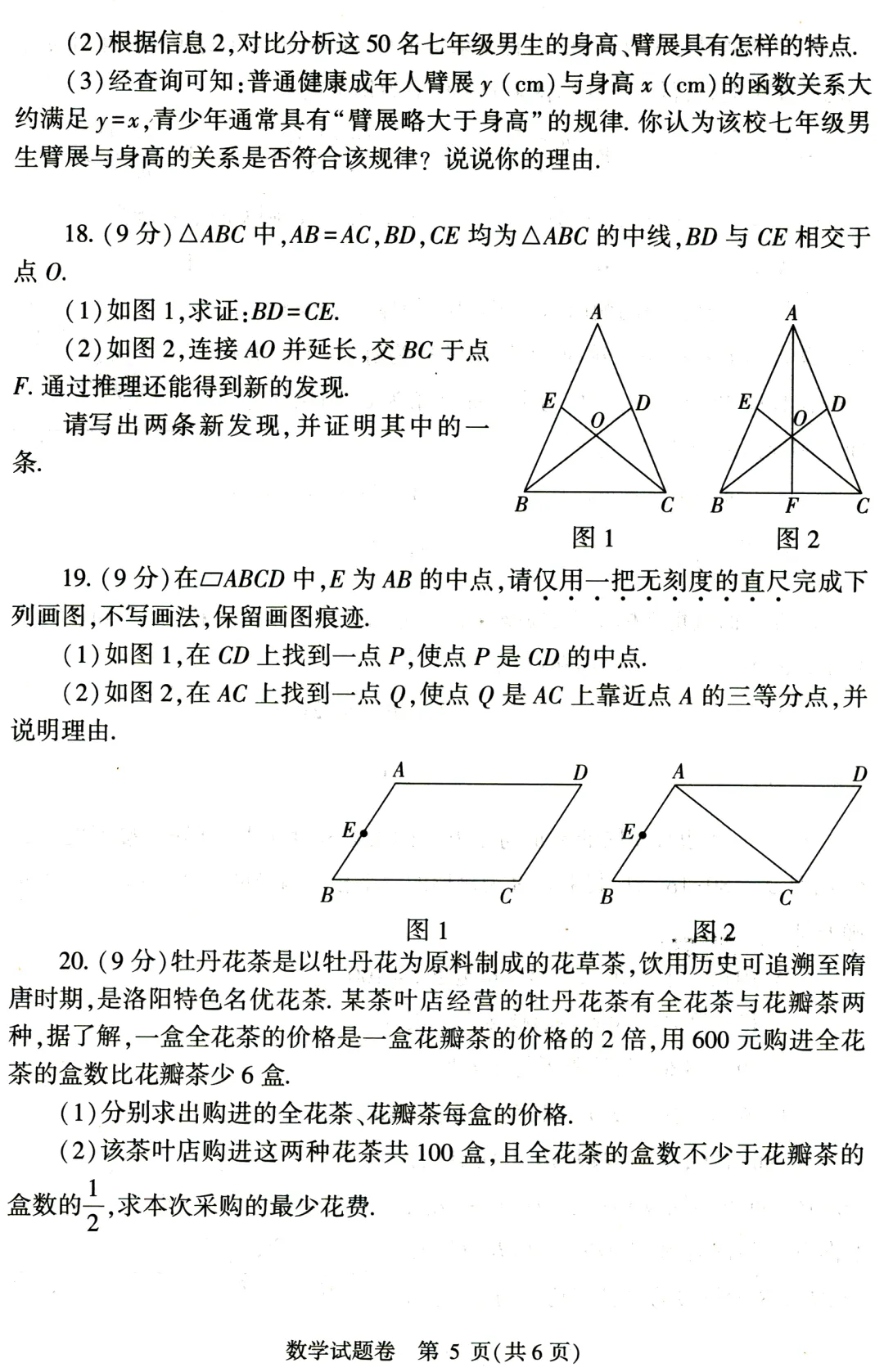 (1) 证明:∵AB=AC,BD、CE为中线,∴AD=AE=½AB,∠A公共,∴△ABD≌△ACE(SAS),∴BD=CE。(2) 新发现:①AF是BC边上的中线;②AF⊥BC;③点O是重心等。证明示例:由(1)知BD=CE,又∠OBC=∠OCB(等边对等角),∴OB=OC,∴O在BC中垂线上,又AB=AC,∴A也在BC中垂线上,∴A、O、F共线且F为BC中点,AF⊥BC。