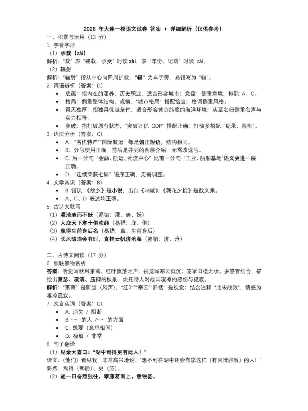 语文试卷及答案解析