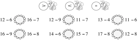 1.3比12少( );8比( )少7;16比( )多9。