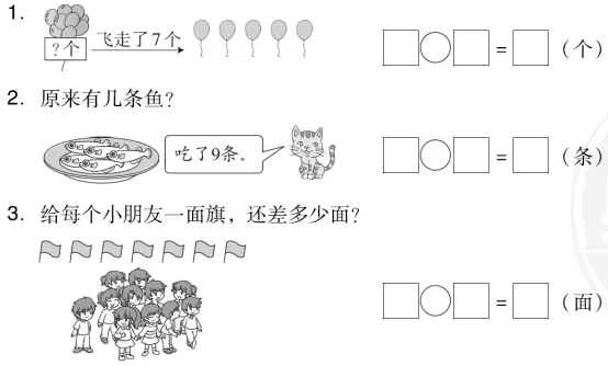 4.圆和三角形相差多少个? □□=□(个)