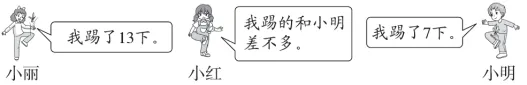(2)小丽比小明多踢了多少下?□□=□(下)