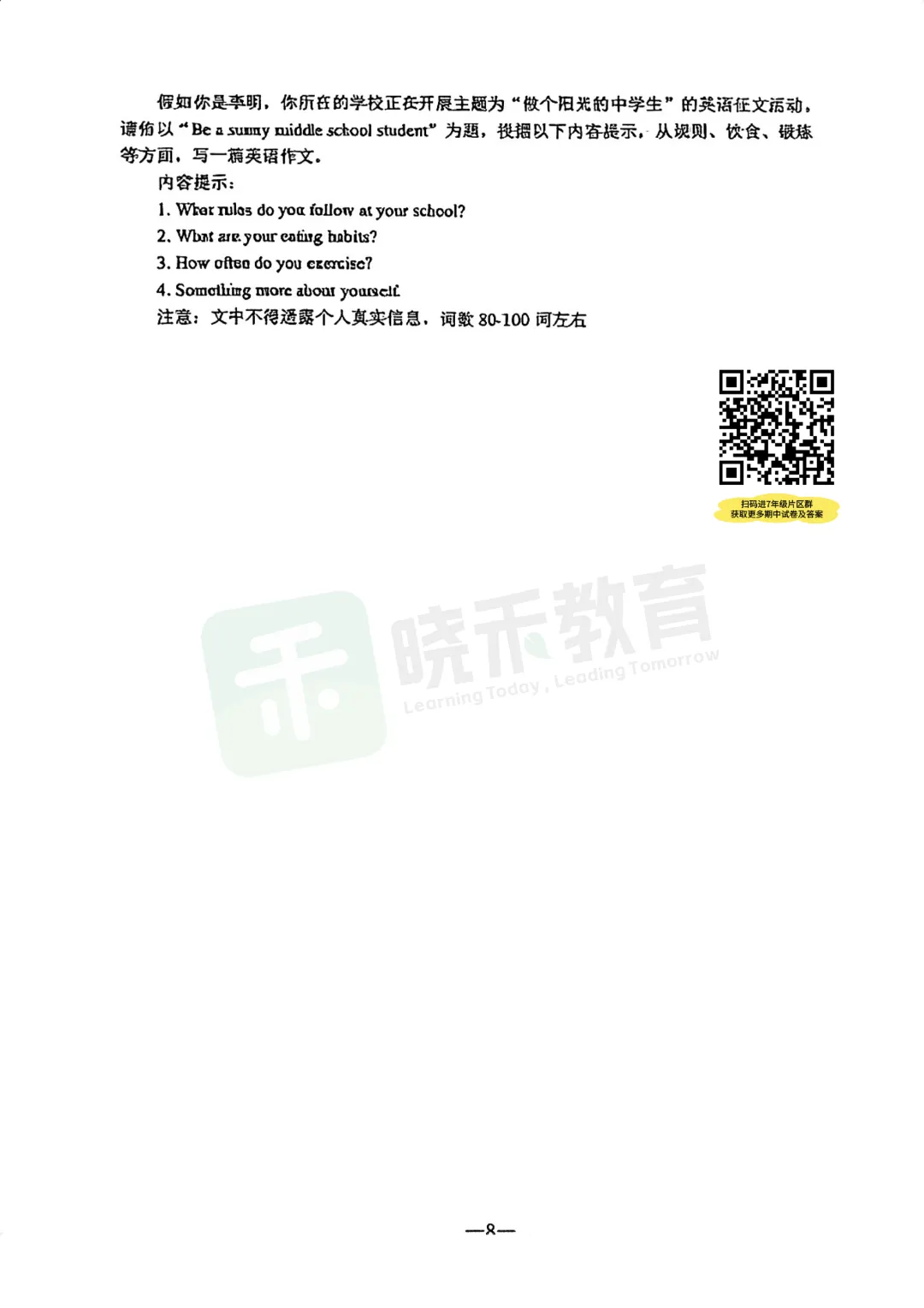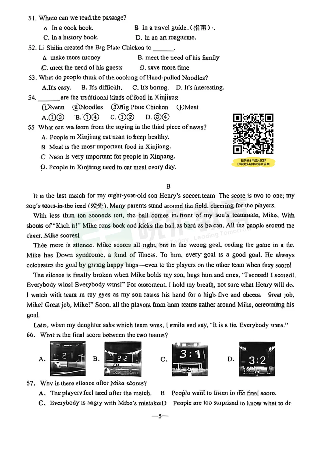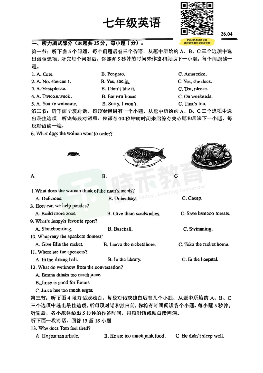 刚刚收集到【汉阳区7年级英语2025-2026下学期】期中试卷,如需完整版试卷及答案,扫码加入【7年级片区交流群】,即可免费获取,更多单元测、期中末、月考试卷持续更新中!
