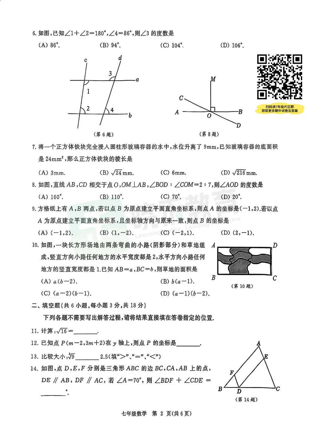 刚刚收集到【江汉区7年级数学2025-2026下学期】期中试卷,如需完整版试卷及答案,扫码加入【7年级片区交流群】,即可免费获取,更多单元测、期中末、月考试卷持续更新中!
